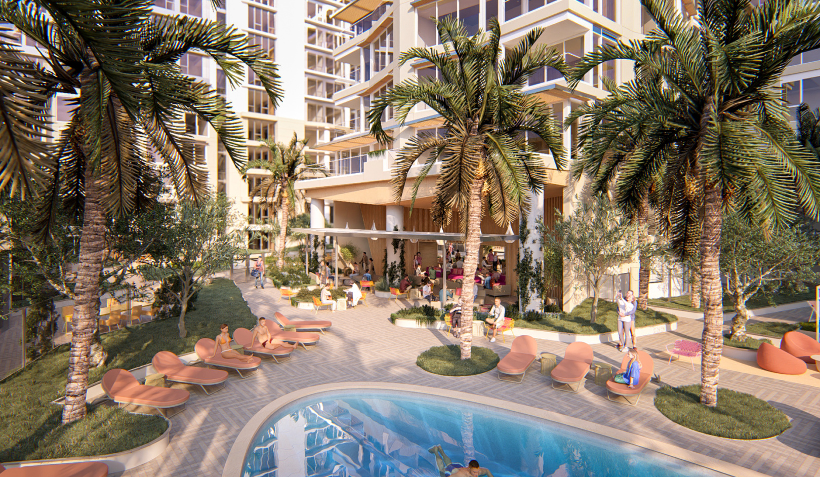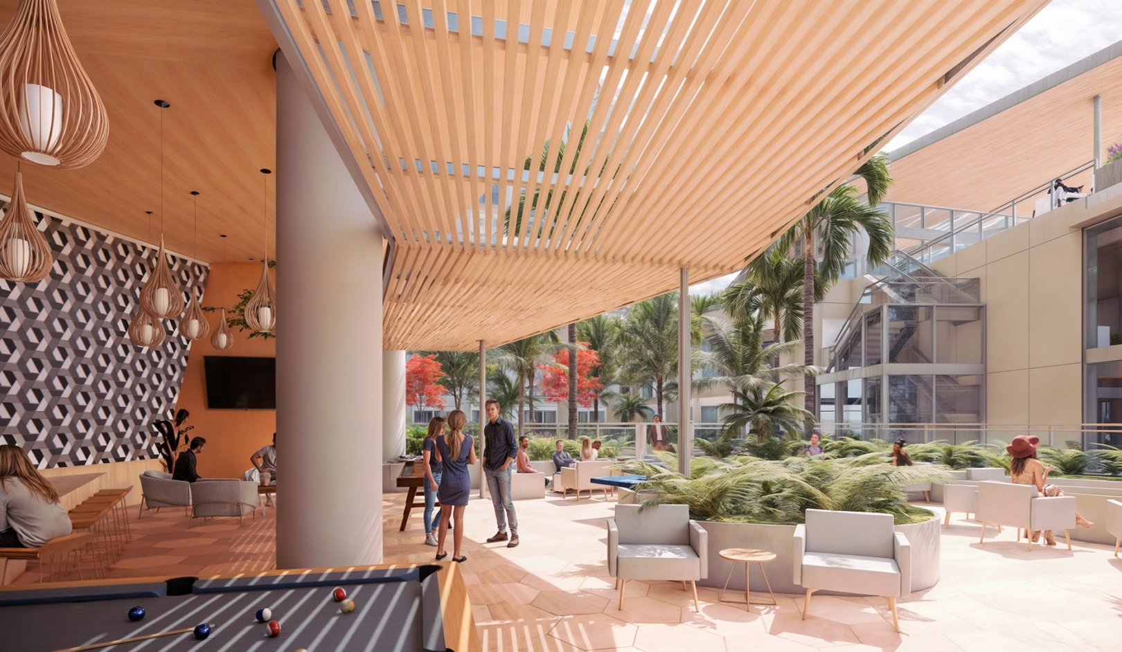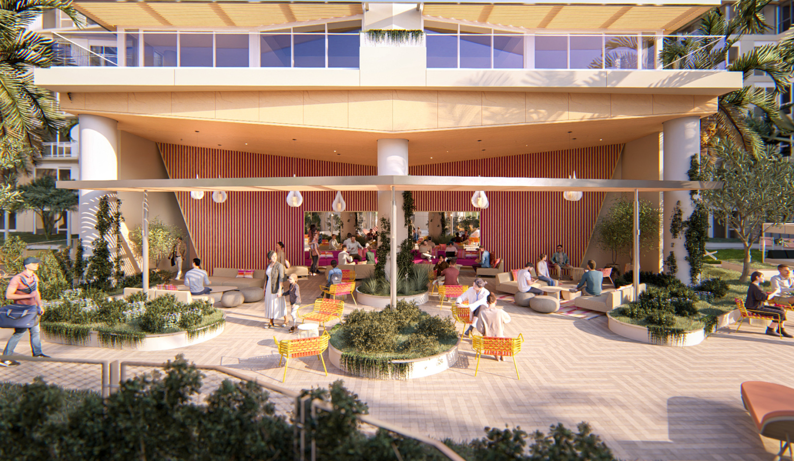 A pedestrian paseo connects the community to a variety of indoor and outdoor food and beverage retail offerings, further accommodating a robust and health-centered micro-village experience.
