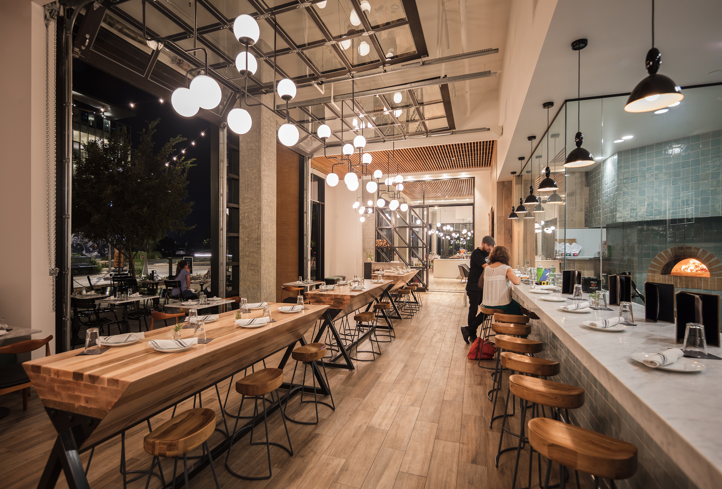 Block C also encompasses North City Plaza, with shaded outdoor dining spaces, public art, event lawn, and performance stage. Situated across from one another and open to either side of the large Block C entryway, a cafe and coffee shop create a “lobby lounge.” Both storefronts open completely to the outdoor plaza with extended seating, creating a vibrant space of dining and interaction.