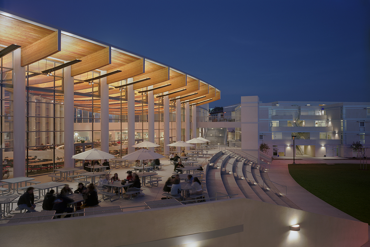 The design includes 21 buildings, including housing and dining facilities, meeting rooms, academic offices, and a parking structure. The college is organized around a series of large public outdoor spaces, terraces, and promenades that distinguish the character of the project. Many of the new buildings are defined by balconies and terraces that take advantage of San Diego’s mild climate and the site’s panoramic ocean views.