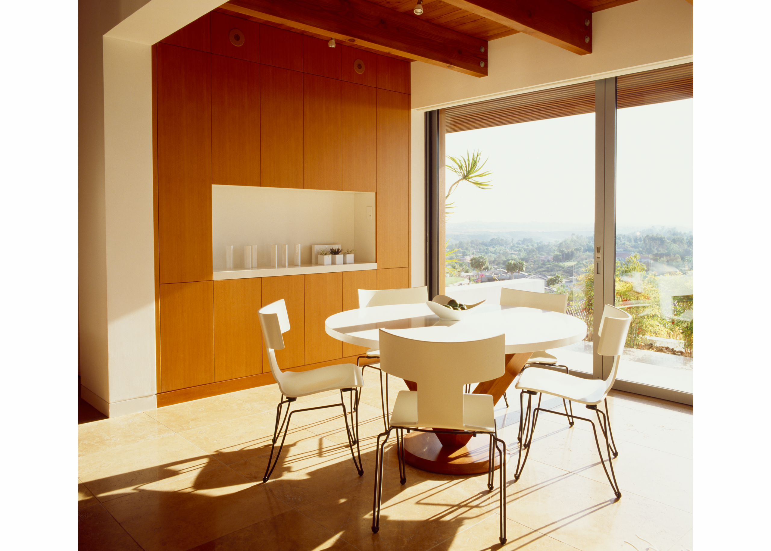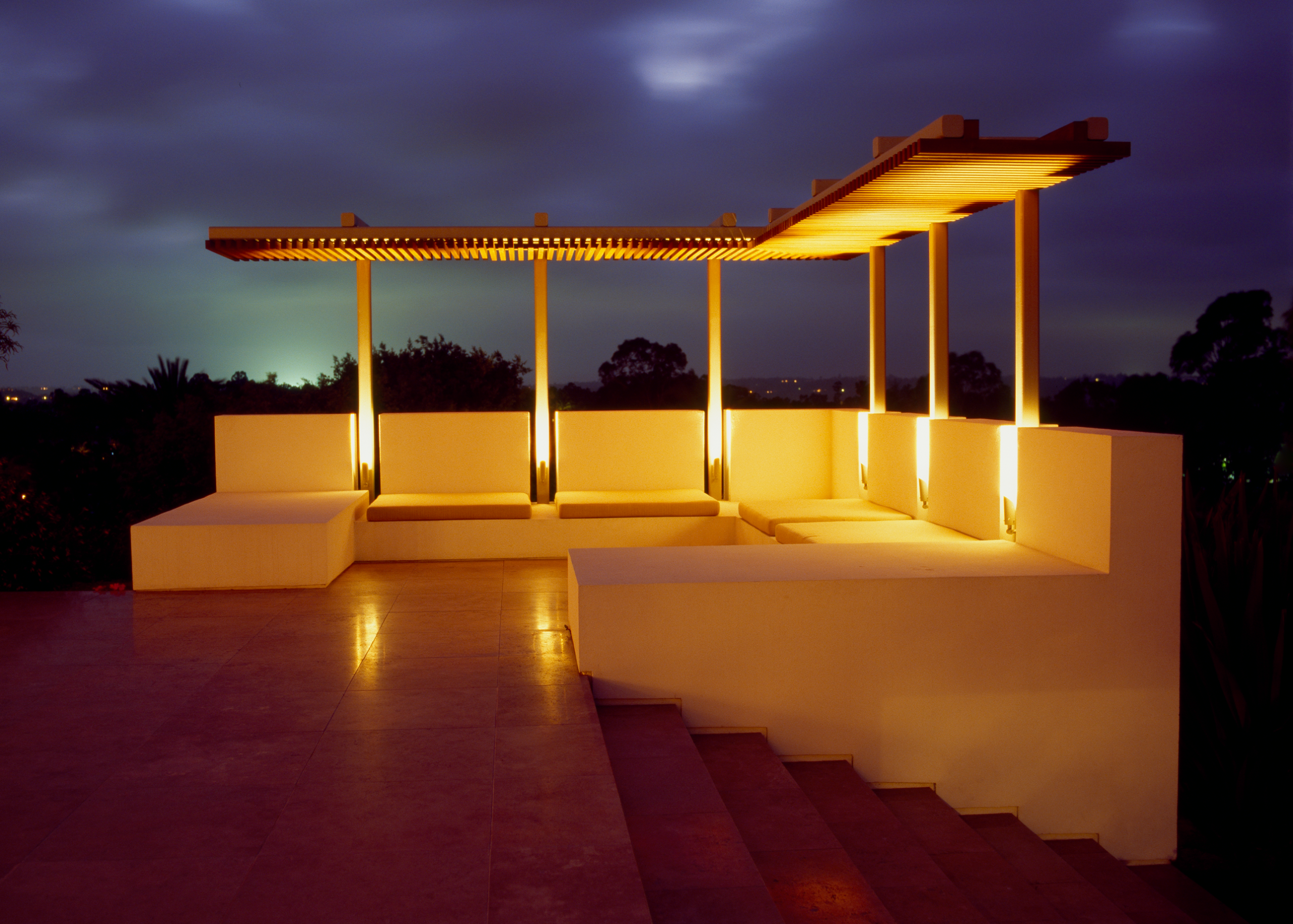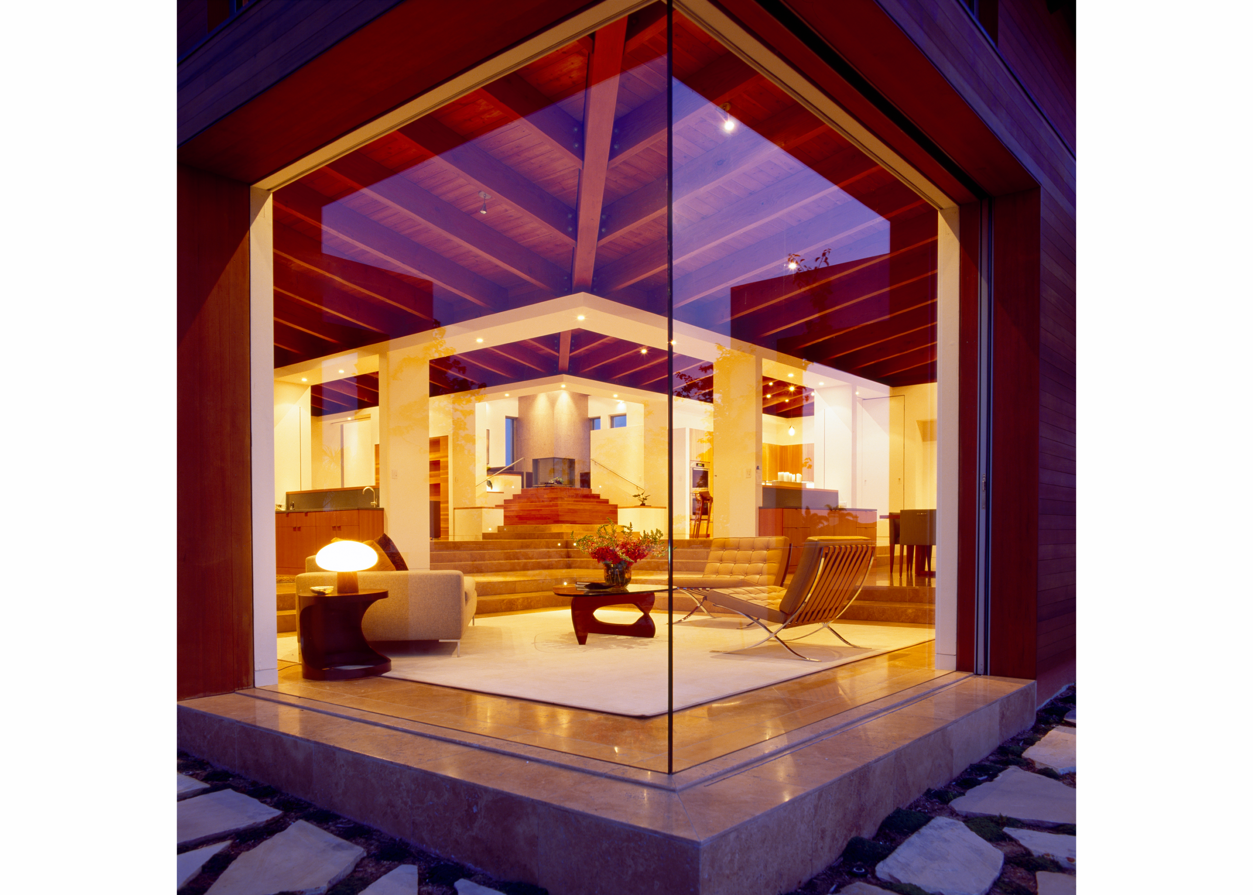 Perched on a mountain top with expansive northwest views, this 10,500 SF house gently responds to the natural typography and steps down the hill. Each level spills out onto an exterior patio with massive glass pocket doors, creating a seamless relationship between interior and exterior spaces. Angled roofs emphasize the stepping quality of the house while providing for views upwards and downwards.