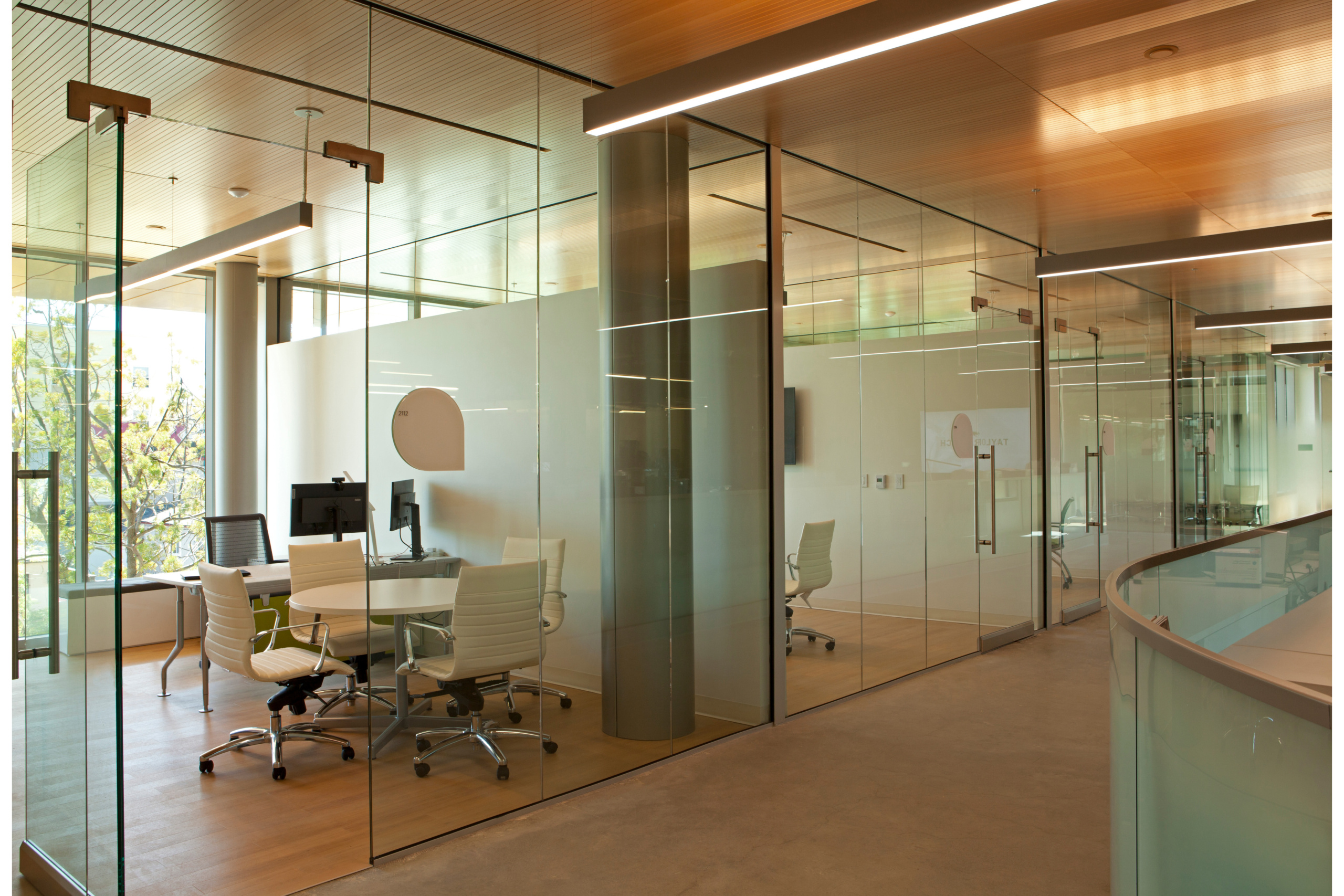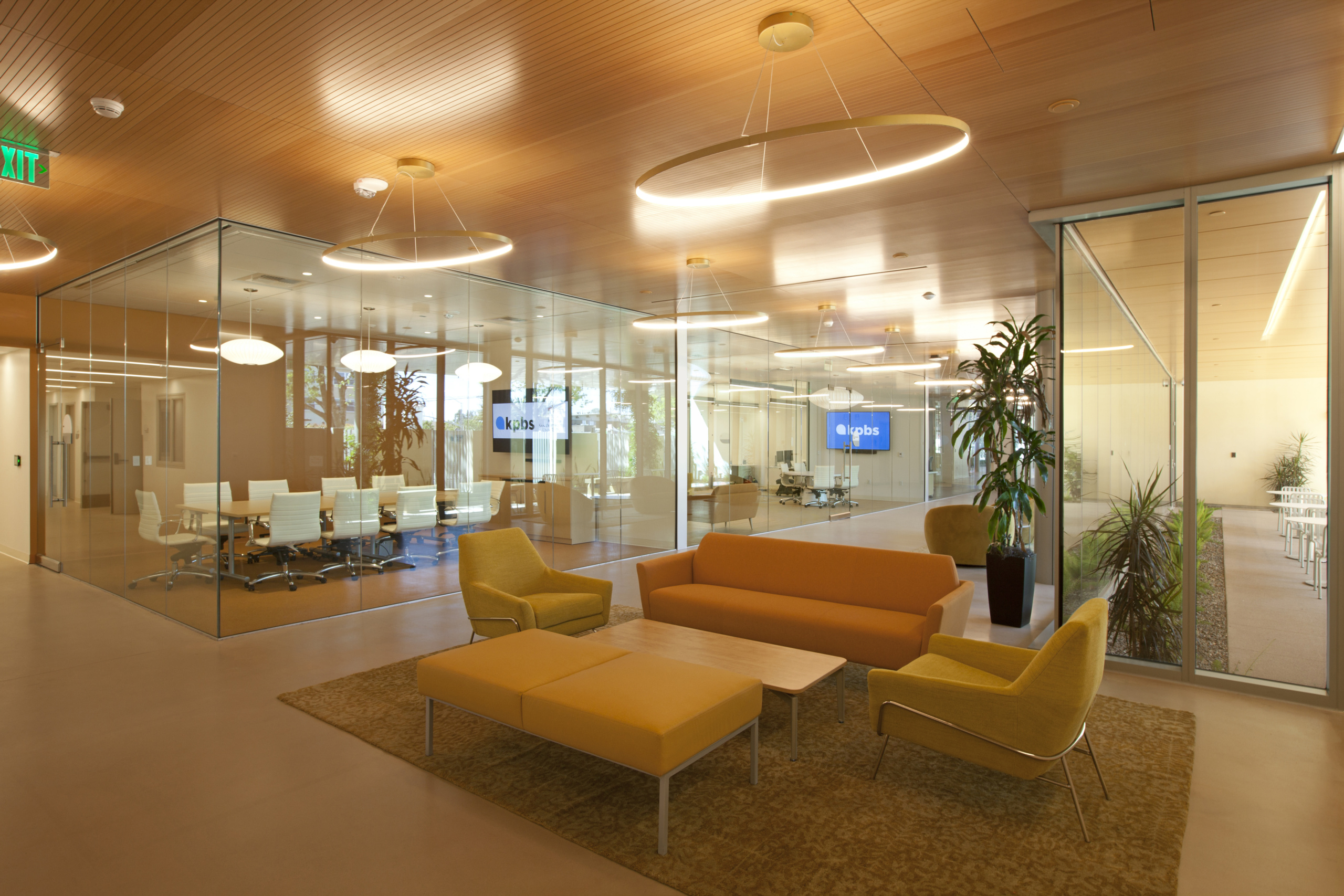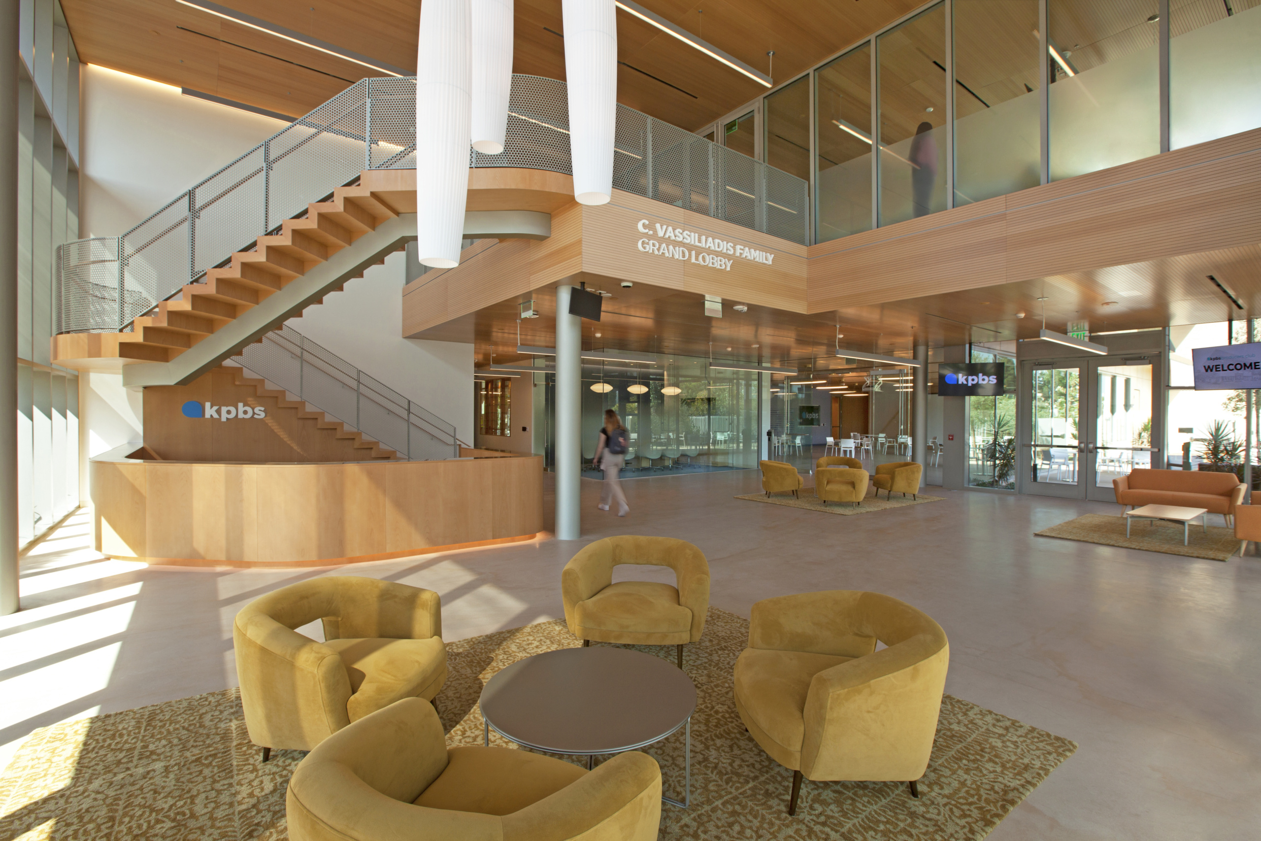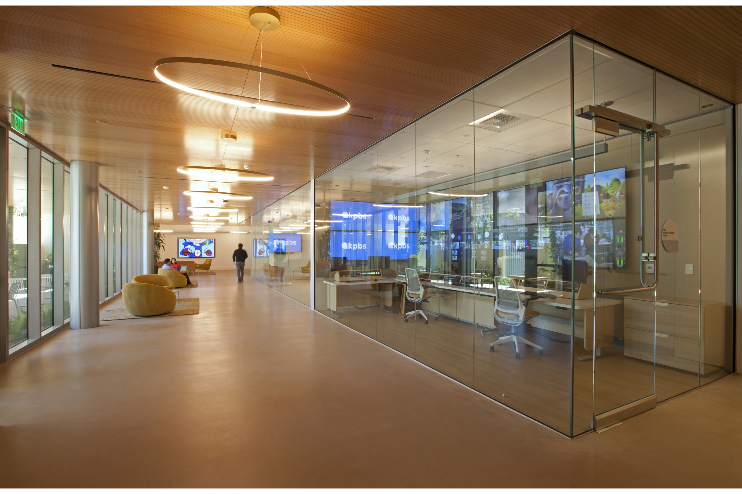 The KPBS building has been designed to maximize energy performance without sacrificing access to daylighting and views, creating a heathier work environment for its occupants. Large roof overhangs, deep eyebrows and high-performance glazing provide solar protection throughout the design. At the double height lobby areas, an encapsulated metal mesh within the insulated glazing was used to reduce heat gain and control glare.