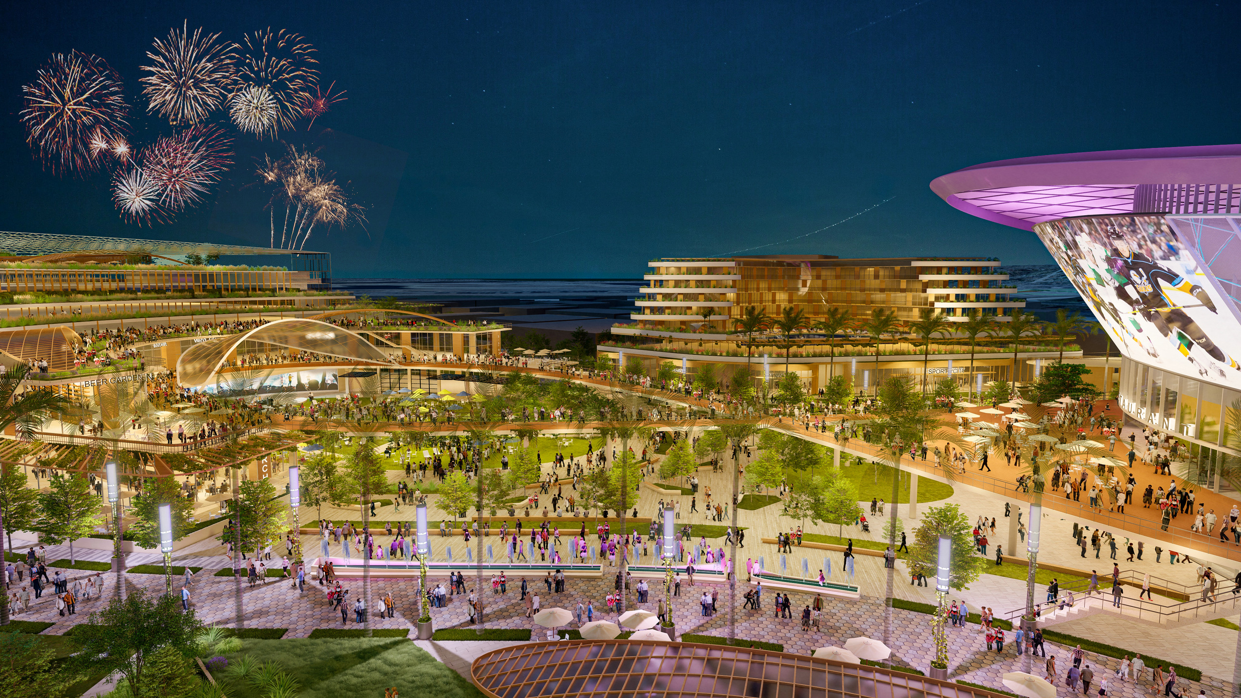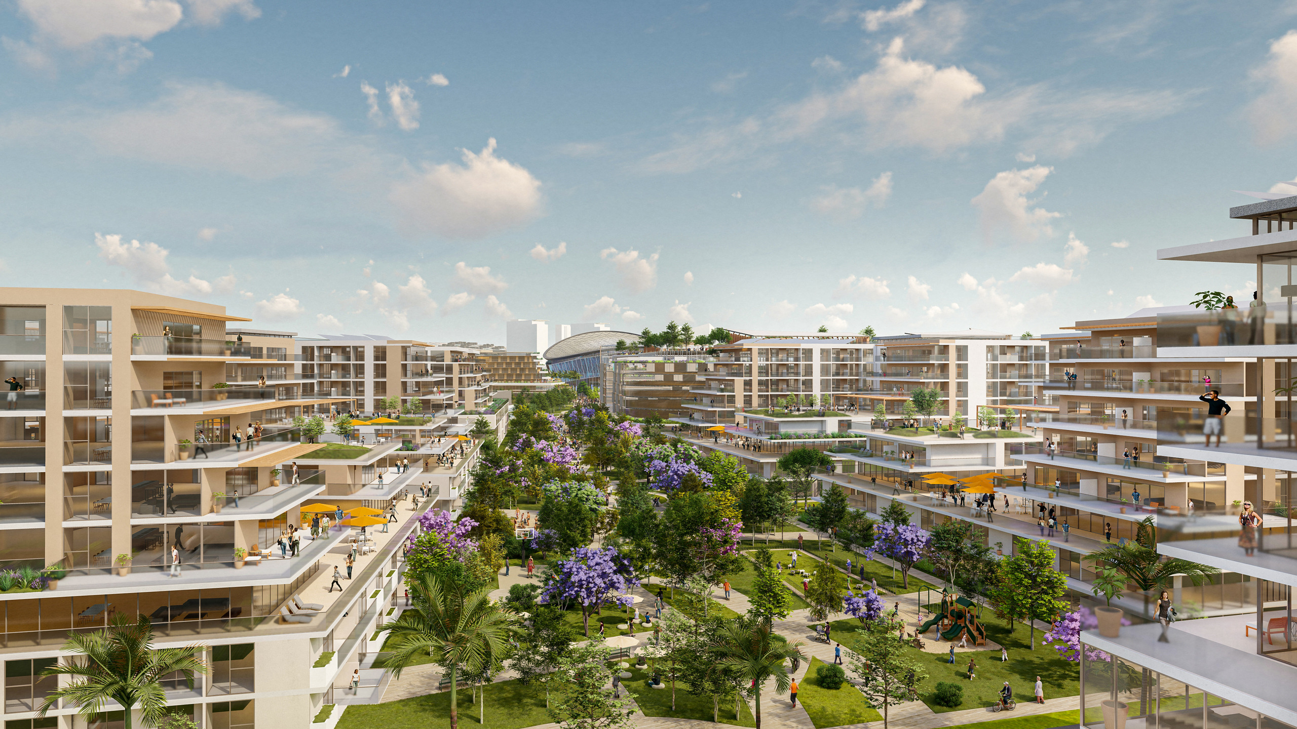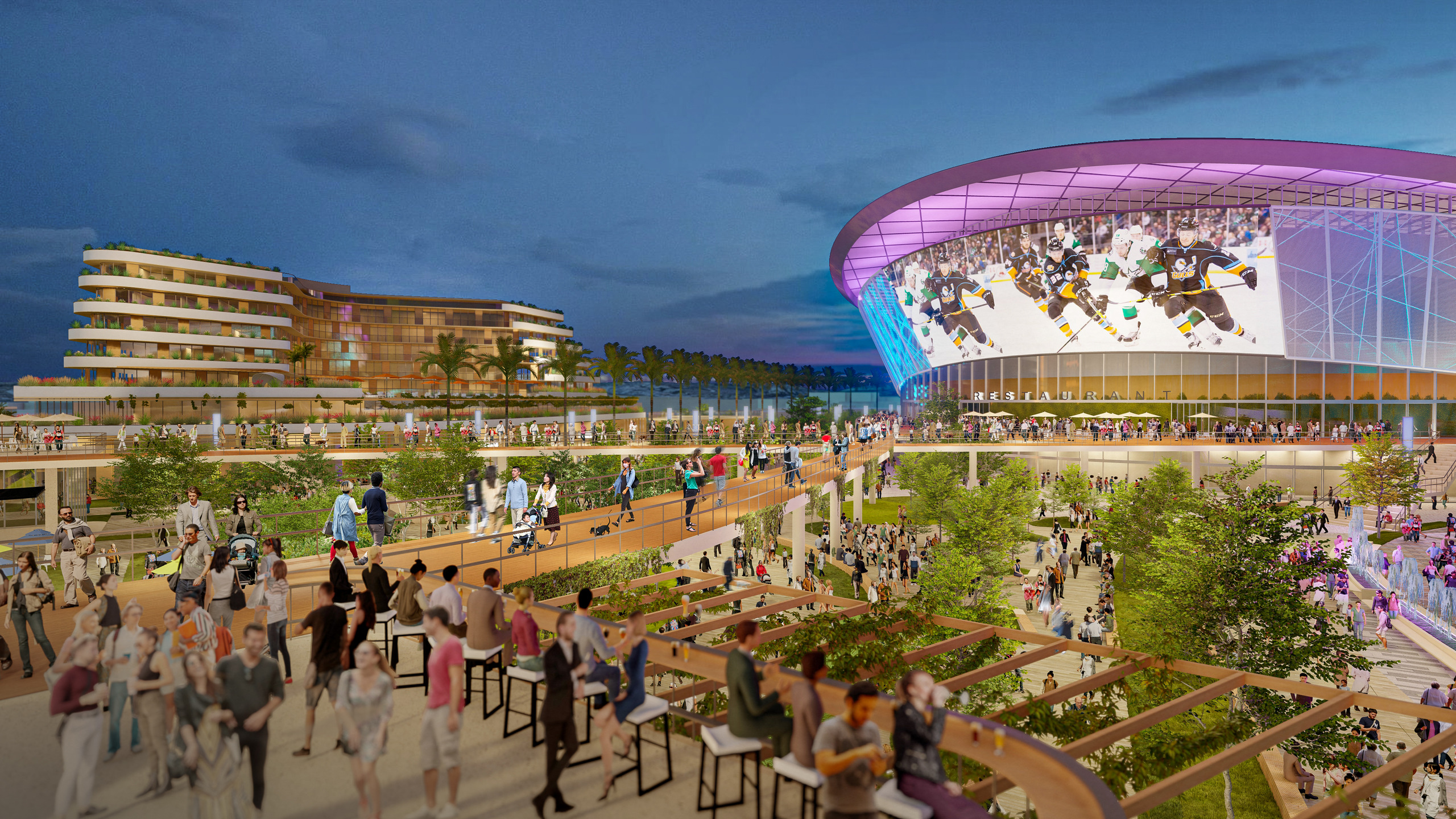 Midway Rising is a master plan proposal to revitalize surplus land in San Diego’s Sports Arena neighborhood with 4,000 housing units and a 16,000-seat arena. Beyond ample housing and a new arena, the master plan offers the community a vibrant, walkable center. Complete with entertainment, recreation, food, and retail options, this new central hub envisions an outdoor performance venue, open parks, a hotel, and outdoor amenities that celebrate the talent and diversity of San Diego.