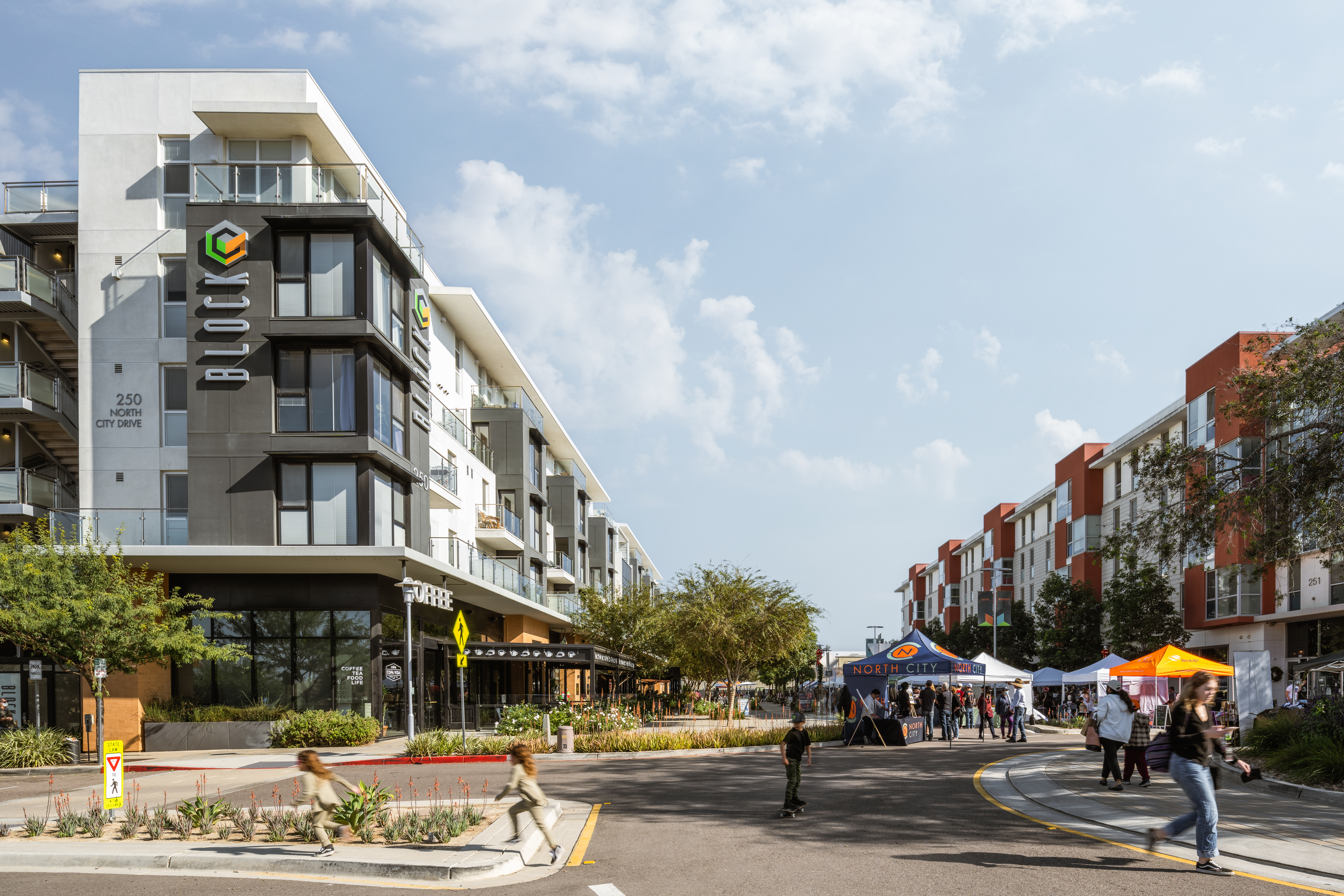 The North City Master Plan creates a timeless, sustainable city from the ground up in the heart of the City of San Marcos. Located just steps from California State University San Marcos, North City responds to the needs of the university by providing a variety of housing, live/work, education, and entertainment options in a pedestrian-oriented urban environment.